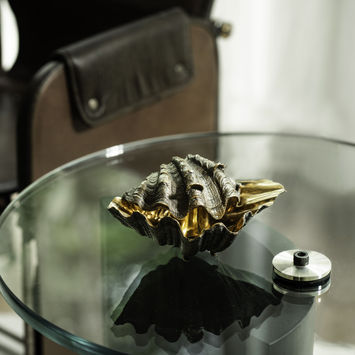 Luminária de Mesa. Escultura em bronze maciço moldado. Acabamento de finalização interno polido. Externo em patina ônix.